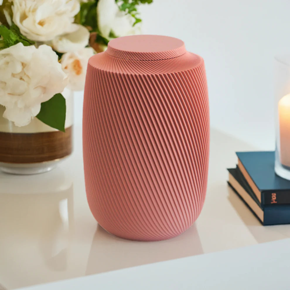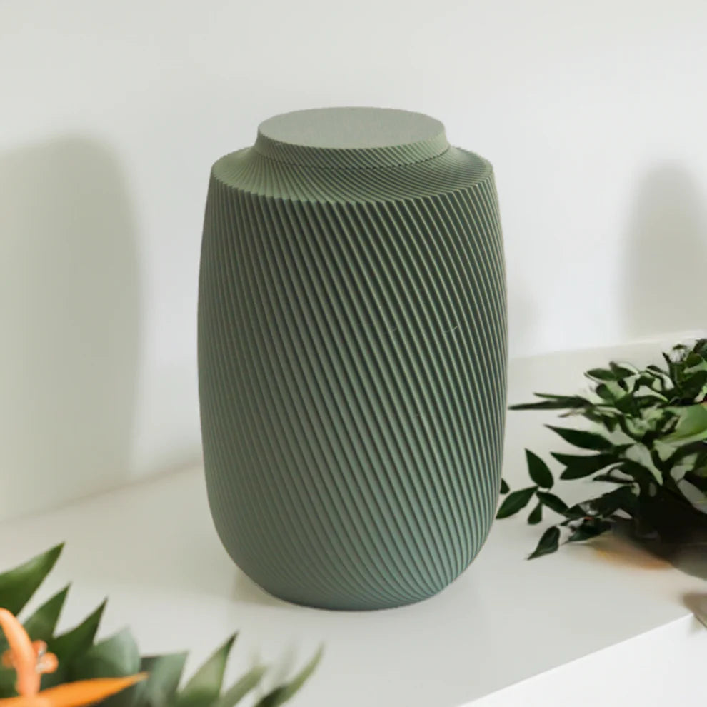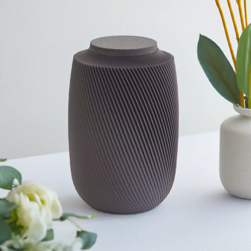The Aspen Urn showcases a captivating spiral motif, inspired by the natural essence of growth and transformation. This distinctive design not only makes it stand out but also represents the enduring bond between your loved one and the world they touched. The elegant curves strike a balance between contemporary and classic, creating a heartfelt tribute that complements any home.